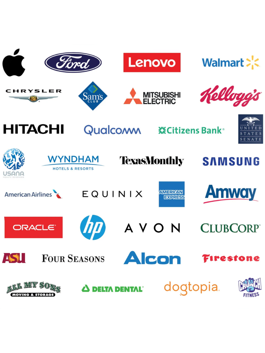 ❍ Real-world insights from working alongside world-class companies like Ford, Walmart, Samsung, HP, and Hallmark, and what makes their leaders exceptional.